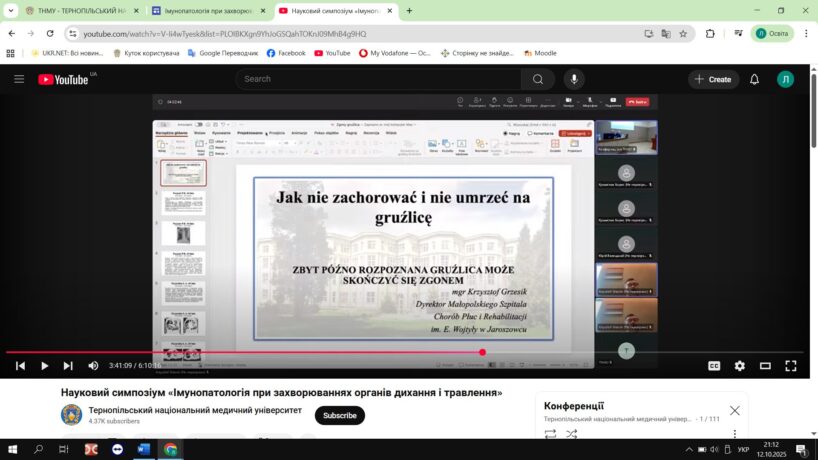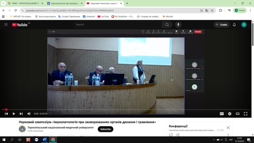 9-10 жовтня 2025 року в Тернопільському національному медичному університеті імені І.Горбачевського відбувся XIIІ науковий симпозіум з міжнародною участю «Імунопатологія при захворюваннях органів дихання і травлення».