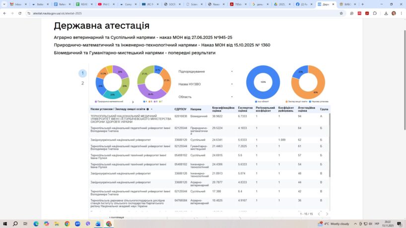 Загалом упродовж року МОН здійснило атестацію понад 500 установ і закладів вищої освіти в шести наукових напрямах: аграрно-ветеринарному, суспільному, інженерно-технологічному, природничо-математичному, біомедичному та гуманітарно-мистецькому. 23 наукові установи, з яких почалась атестація і які продемонстрували найвищу ефективність, уже одержали додаткове базове фінансування. З 1 січня 2026 року його отримають ще 158 атестованих наукових установ та 110 ЗВО.