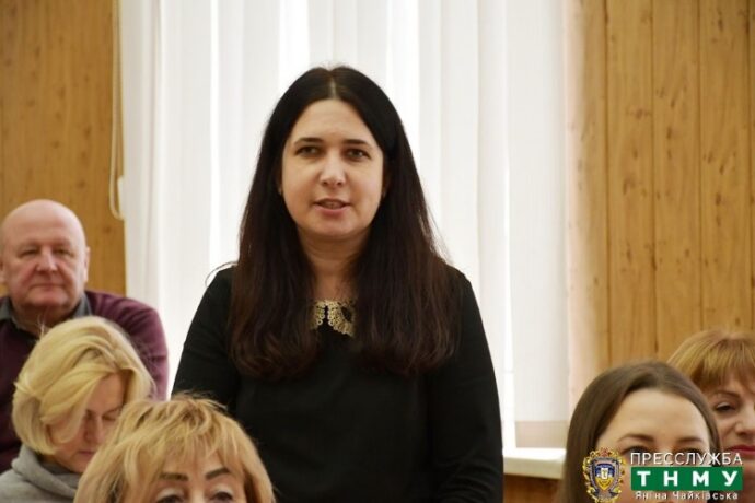 Питання «Обговорення і затвердження звіту виконання держбюджетної теми: «Застосування технологій регенеративної медицини для лікування хронічних ран», а також питання «Публікаційна активність докторів наук у журналах, що цитуються науково-метричними базами Scopus та WebofScience» доповідала науковий керівник держбюджетної теми, професор Шевчук Оксана Олегівна.