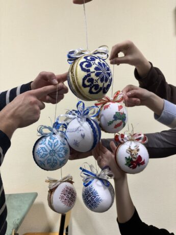 Спершу працювали над вишивкою на полотні – хтось уперше, хтось уже «профі», але кожен старався від душі. А потім найцікавіше: свою вишивку перетворювали на новорічну кульку. Полотно акуратно натягували на основу – і в результаті вийшли унікальні, дуже теплі та стильні прикраси. Кожна зі своєю історією та настроєм. Такі події не просто дарують святкову атмосферу – вони об’єднують студентів, дозволяють відчути підтримку один одного, перепочити від навчання й одночасно торкнутися українських традицій у творчому форматі.