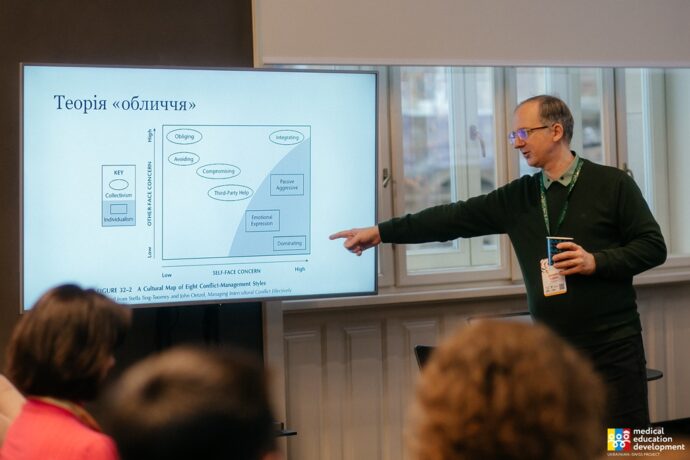 Друга сесія «Школи усвідомленої комунікації» від Україно-швейцарського проєкту «Розвиток медичної освіти», яка відбулася 20-21 листопада 2025 року, була присвячена розумінню впливу комунікації на психологічний і соціальний стан спільнот. Головна увага зосереджувалася на тому, яким чином слова формують середовище: підтримувальне чи токсичне.