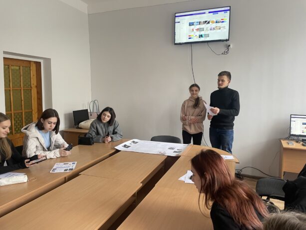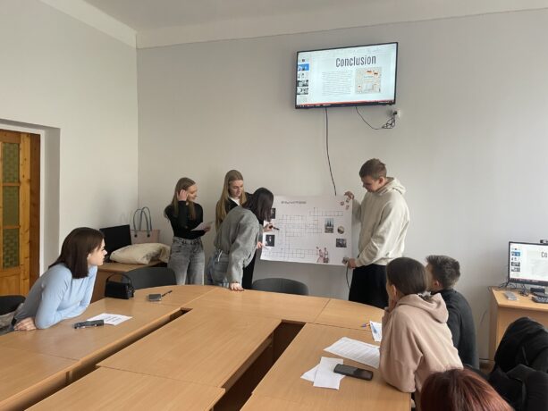 Практична частина заходу відбулася у форматі інтерактивної роботи. Студенти виконували тематичні завдання, зокрема розгадували кросворди, що сприяло закріпленню лексичного матеріалу та активізації мовленнєвих навичок. Особливий інтерес викликало завдання з відгадування слів французькою мовою, яке додало елемент змагальності та сприяло розширенню мовного кругозору учасників.