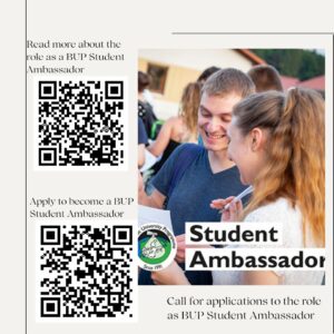Work together with other students to develop and promote events and opportunities within the BUP. Becoming a Student Ambassador is a unique opportunity to network…
