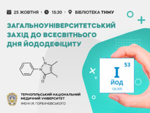 Запрошуємо студентів ТНМУ на захід до «Всесвітнього дня йододефіциту», який відбудеться 25 жовтня о 15.30 у бібліотеці Тернопільського національного медичного університету (вулиця Січових стрільців, 8).…