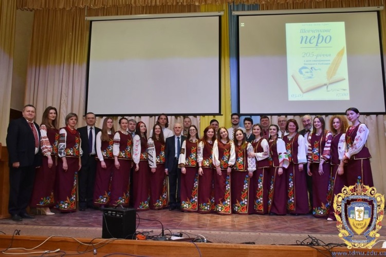 Щороку в Тернопільському державному медичному університеті вшановують пам’ять Кобзаря. Цьогоріч студенти ТДМУ підготували програму «Шевченкове перо», яка торкнулася серця кожного глядача в залі. Розпочався вечір…