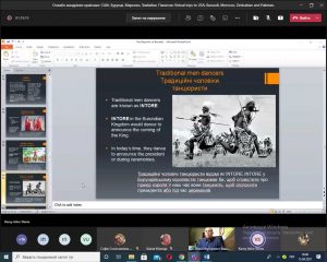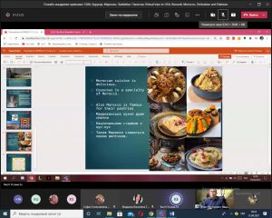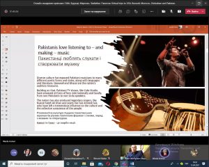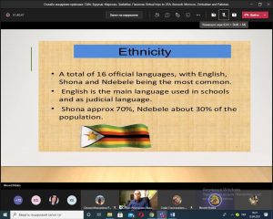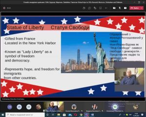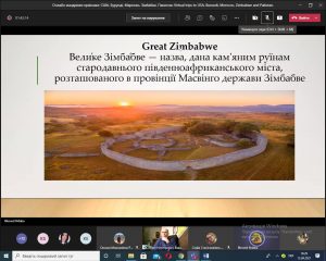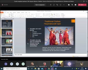 Professor Vadziuk S.N., the head of the department, opened the meeting. The teachers of the department regularly meet with students, are interested in the traditions of their peoples, customs. That is why it was decided to organize an on-line meeting with speakers who are representatives of the United States, Burundi, Morocco, Zimbabwe, and Pakistan. Information about the history, culture, health care, architectural monuments, famous people of these countries was reported by English-speaking students in English and Ukrainian.