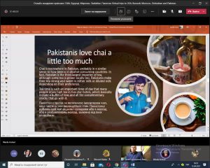 At the end of the educational event, a student of the group 375 of the Medical Faculty Varda Arshad presented on “Culture of Pakistan”. Most languages ​​in Pakistan are of the Indo-Iranian language group, including Urdu, the national language. Pakistan is the third largest importer of tea. Most local weddings last from three to six days. Celebrations usually begin with a day dedicated to the use of henna, followed by a musical night and a night of traditional rituals to bless the couple. Then there are two-day dinners organized by the bride and groom.