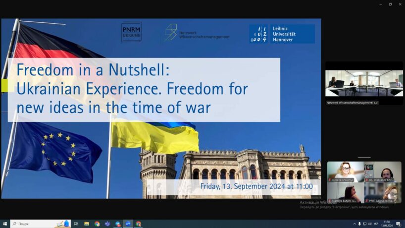 On September 13, 2024, TNMU Professor participated in the online conference “Freedom in a Nutshell: Ukrainian Experience. Freedom for New Ideas in the Time of War”. It was organized by Netzwerk Wissenschaftsmanagement (Network of Education and Science Managers of Germany, https://netzwerk-wissenschaftsmanagement.de/ ) in cooperation with the Professional Network of Education and Science Managers of Ukraine (PNRM Ukraine – https://pnrm.org/ ) with the support of the DAAD project – Internationalization of Higher Education in Ukraine. MoI Ukraine: Management of Internationalization and German-Ukrainian Academic Cooperation (https://www.uni-hannover.de/en/universitaet/internationales/moi-ukraine).
