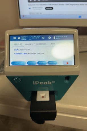 Analysis of test cassettes with capillary and venous blood using the Acudart Lyme LFA – iPeak Reader, which visualizes and quantitatively assesses results by detecting control and test lines relative to background.