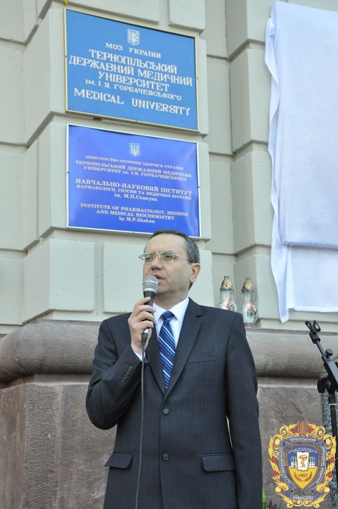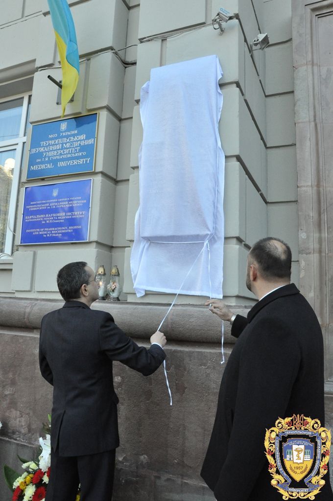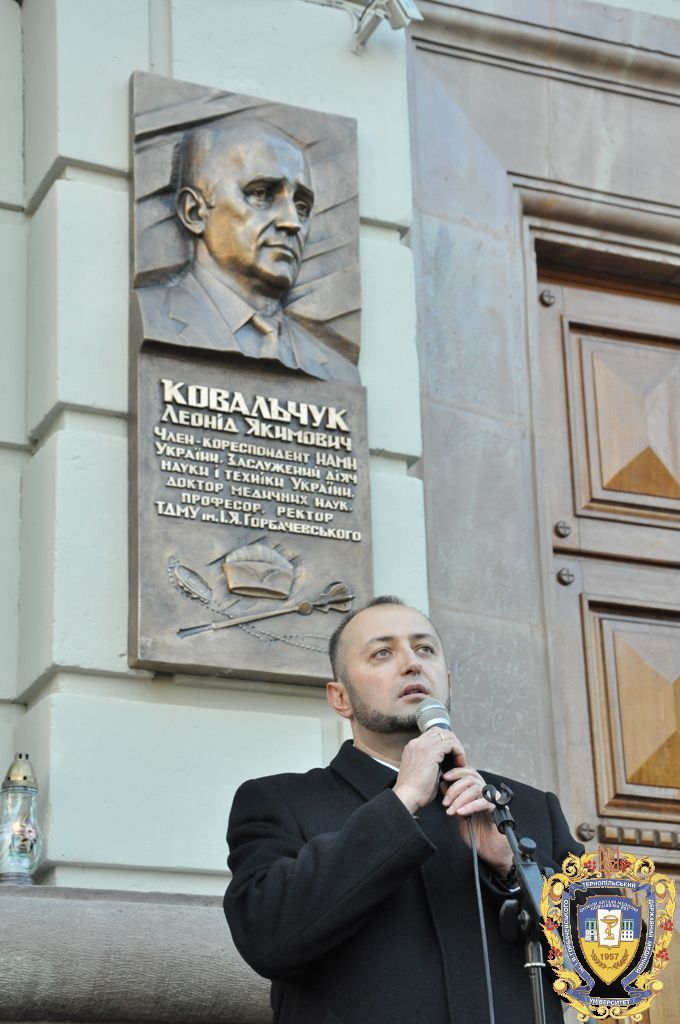 The ceremony of a commemorative plaque opening dedicated to Leonid Kovalchuk took place that day. It was situated at the administrative building of TSMU.