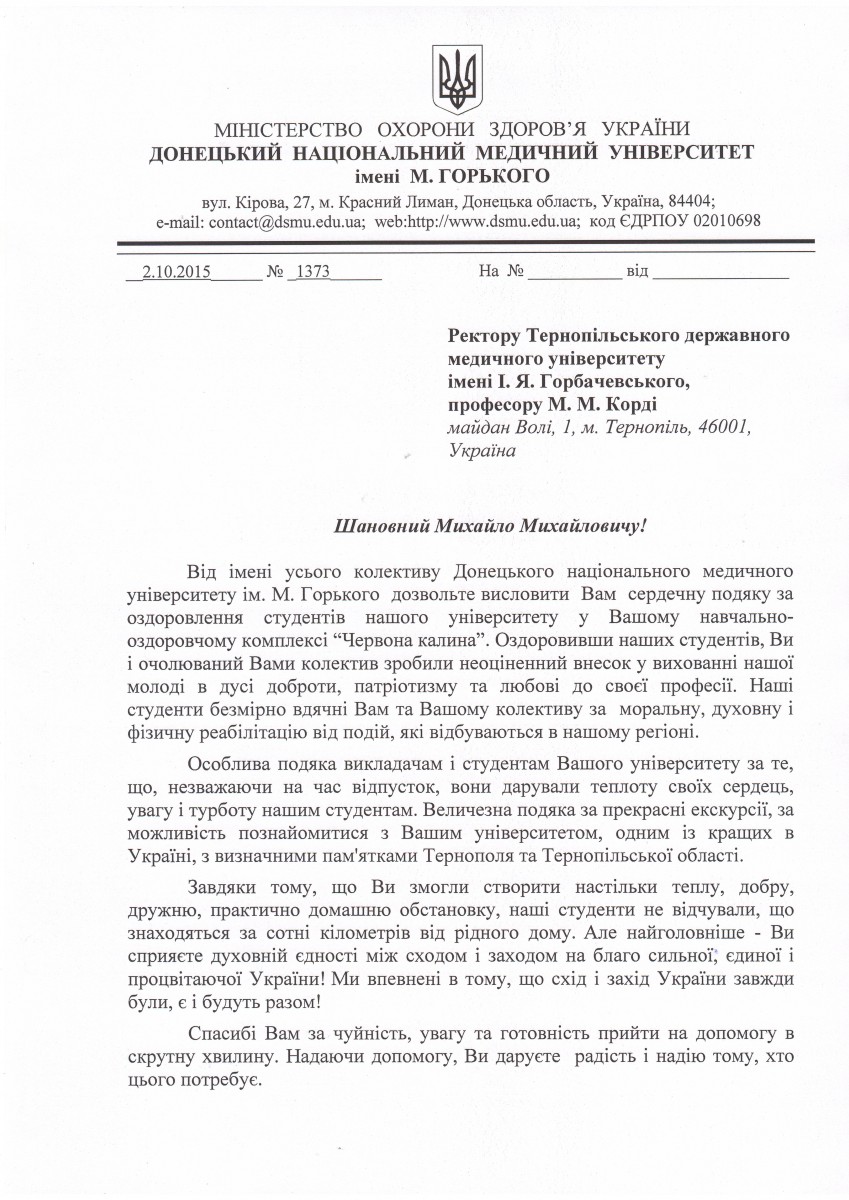 The DNMU Rector Professor Yurii Dumanskyi expressed profound gratitude to the TSMU Rector Professor Mykhailo Korda for the support to the Donetsk university students.
