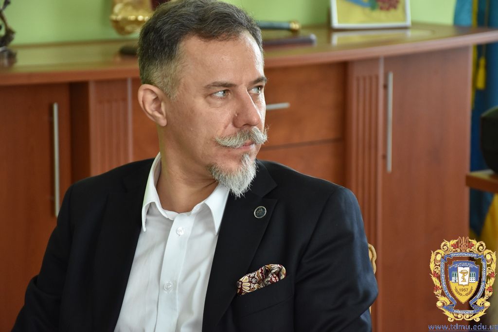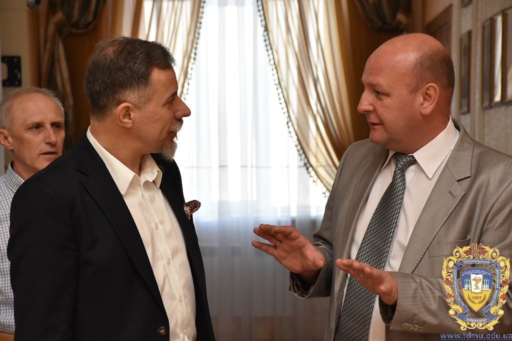 A delegation of scientists and medical doctors from the Republic of Poland, including vice president of the medical center «Horizon» Andrzej Komor, representative of the Center for biological and chemical sciences of the University of Warsaw, Dr. Zbigniew Rogulski and co-owner of the Innovation Center Global GMP Marek Marchliński on 17 September met with the rector of Ternopil State medical University, professor Mykhaylo Korda to develop cooperation directions. In addition to discussing a number of possible areas for future collaboration, the Polish colleagues presented activities of their institutions, while Dr. Korda told the guests about the University, its achievements, organizational structure, academic process and research areas.