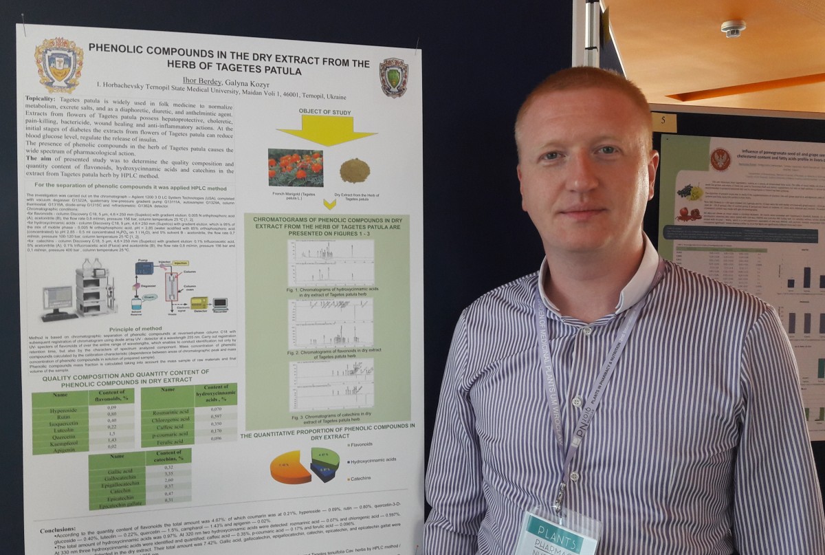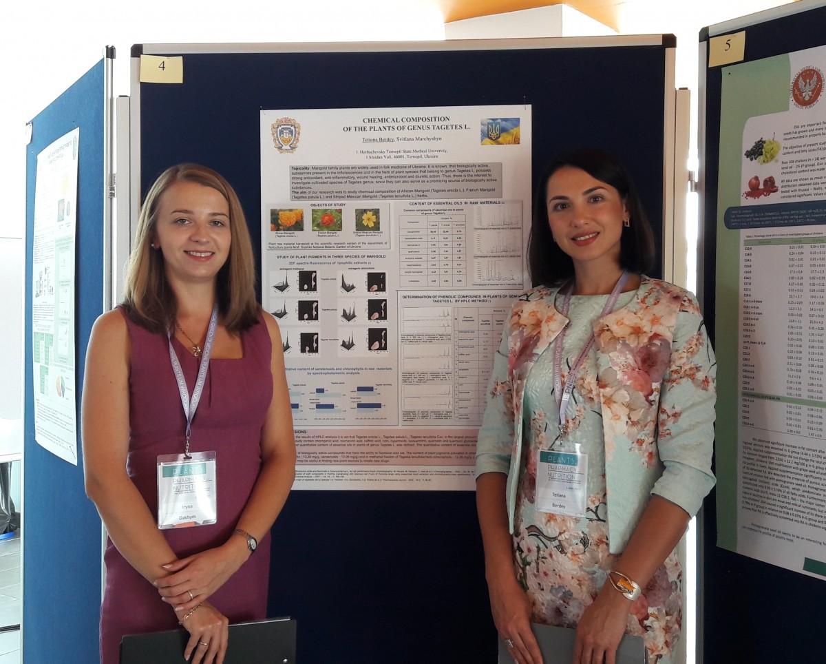 Ternopil State Medical University scientists presented their research in 4 poster presentations: Chromatographic analysis of primary metabolites in aerial part of Ocimum americanum L. (M. Shanaida, I. Kernychna, Yu. Shanaida), Polysaccharides in Bellis perennis L. (I. Dakhym, S. Marchyshyn), Phenolic compounds in dry extract from the herb of Tagetes patula (I. Berdey, G. Kozyr), Chemical composition of three Marigold species (Tagetes spp.) (T . Berdey, S. Marchyshyn).