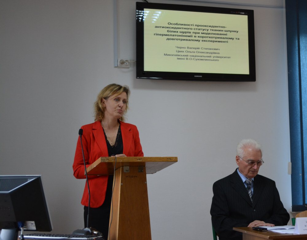 A report on experimental study of the features of oxidant-antioxidant status in the stomach tissue of white rats was presented by Olga Tsviakh, lecturer in chemistry and biochemistry of Nikolaev National University.