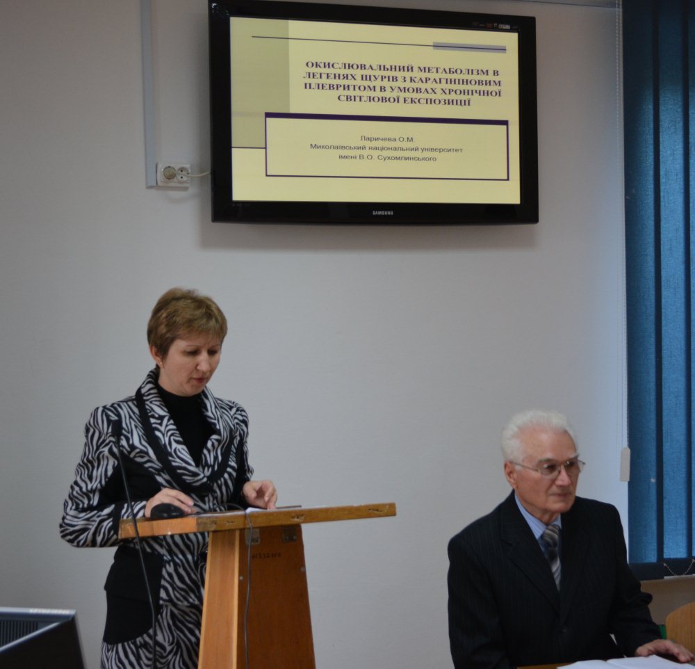 Lecturer in chemistry and biochemistry of Nikolaev National University Olena Larychev presented a report “Oxidative metabolism in the lungs of rats with pleurisy in conditions of chronic light exposure”, which elicited an energetic discussion among the participants.
