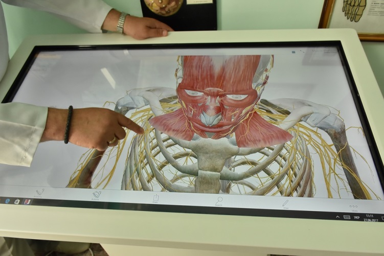 Department of Anatomy of Ternopil State Medical University recently installed two new interactive sensory screens for studying the human anatomy. Head of the department, professor Ilia Herasymiuk says that equipment like this can significantly improve understanding of basic anatomy by the doctors-in-training.