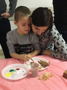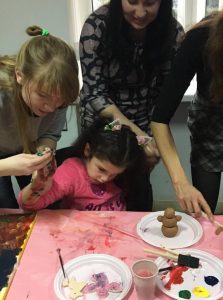 During the holidays, the children together with their parents and second year students Iryna Skrika, Victoria Polelichuk, Ruslana Basaha, Valerii Obriadnyi, Rostislav Mirus, Vladyslava Filipova, Diana Mahur, and Valentyna Vinnykova were actively engaged in doing arts: painting pictures, coloring Christmas ornaments, and sculpting from clay.