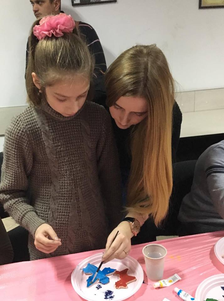 During the holidays, the children together with their parents and second year students Iryna Skrika, Victoria Polelichuk, Ruslana Basaha, Valerii Obriadnyi, Rostislav Mirus, Vladyslava Filipova, Diana Mahur, and Valentyna Vinnykova were actively engaged in doing arts: painting pictures, coloring Christmas ornaments, and sculpting from clay.