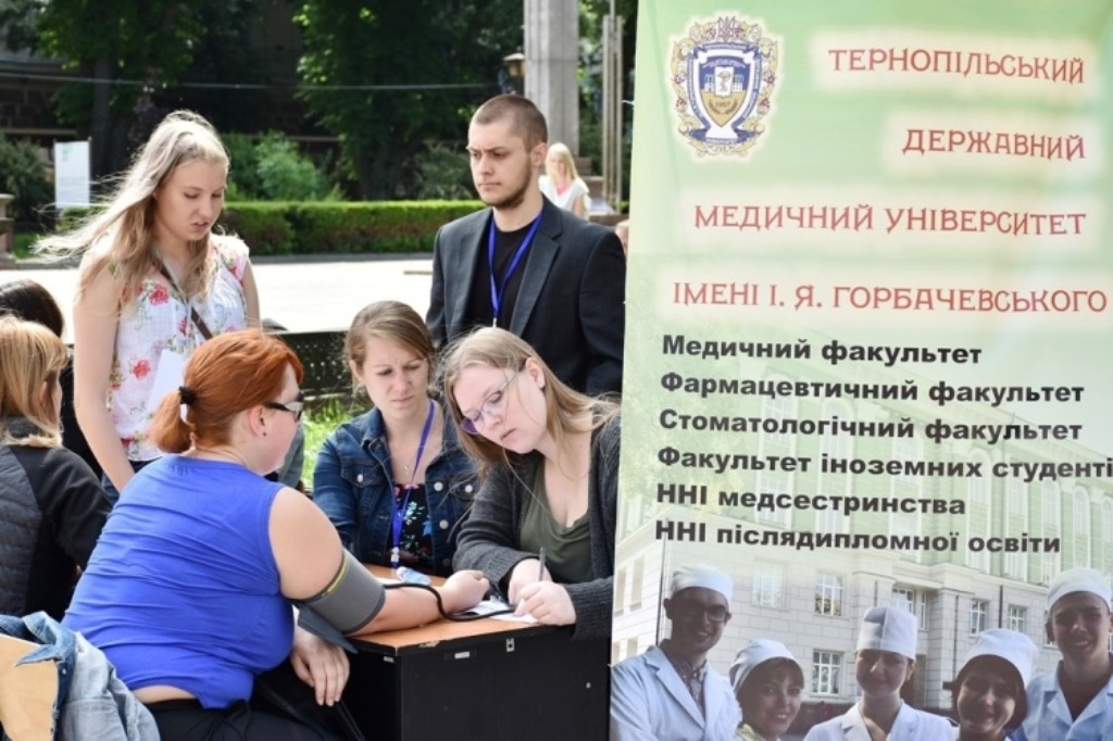On May 22, on Ternopil Theater Square the students took part in a joint action Learn More About Hypertension. They measured blood pressure and gave surveys to Ternopil residents to find out whether they are aware of the factors that might lead to the development of arterial hypertension (excess body weight, bad habits such as smoking and alcohol abuse, lack of physical activity, poor diet, excessive use of salt, acute and chronic stress, and hereditary predisposition). Students educated the public about risks of hypertension and the principles of healthy lifestyle that should be followed to prevent development of arterial hypertension.