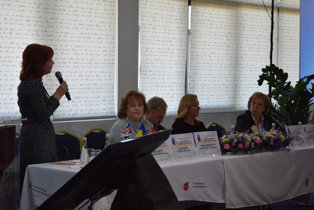 Professor Natalia Banadyha is delivering a report at the plenary session.