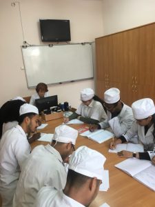 Professor Vadziuk S. N. and Assistant Kashchak T. V. are writing radio dictation with medical students.