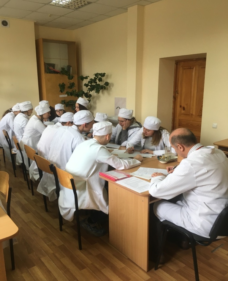 Professor Vadziuk S. N. is writing radio dictation with medical students.