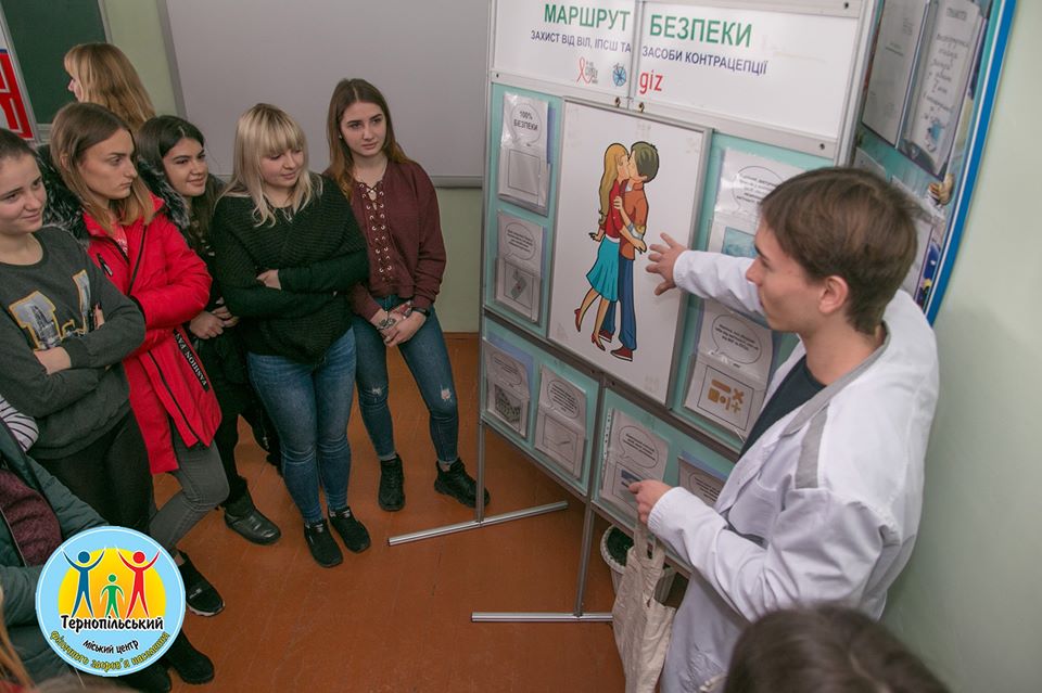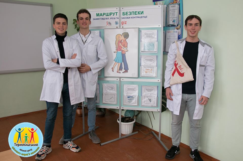 2nd year medical students of TNMU (Korosil Denys, Bagheri Dante Vlad, Kashuba Taras), under the supervision of Prof. S. N. Vadziuk and Assoc. Prof. O. M. Ratynska acquainted the college students with statistics of HIV-infected people in Ukraine and in the world, ways of infection transmission, means of diseases protection and preventing unwanted pregnancy.