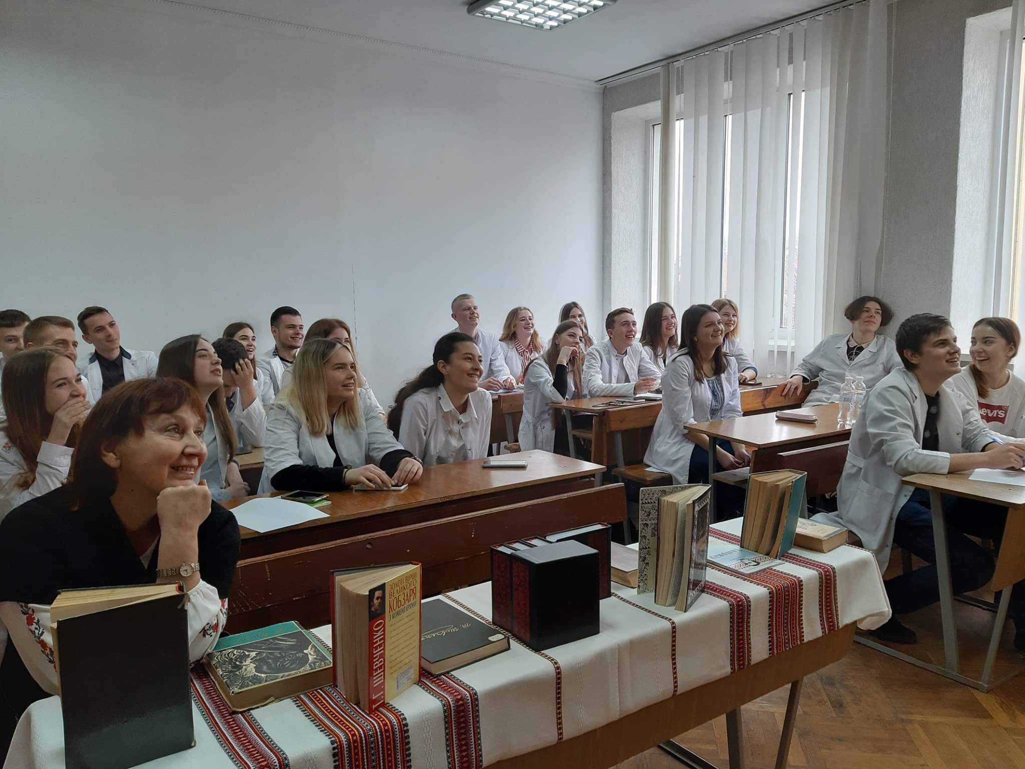 Associate Professor V. I. Zevako and Associate Professor I. Ya. Zalipska with the medical students conducted a literary intellectual game on the works of T. H. Shevchenko. Students answered questions, solved logical tasks, and recited poems.