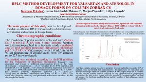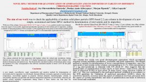 Poster report by the PhD student Kateryna Peleshok, the Assistant Professor of the Department of Pharmaceutical Chemistry and Professor Lilia Lohoida