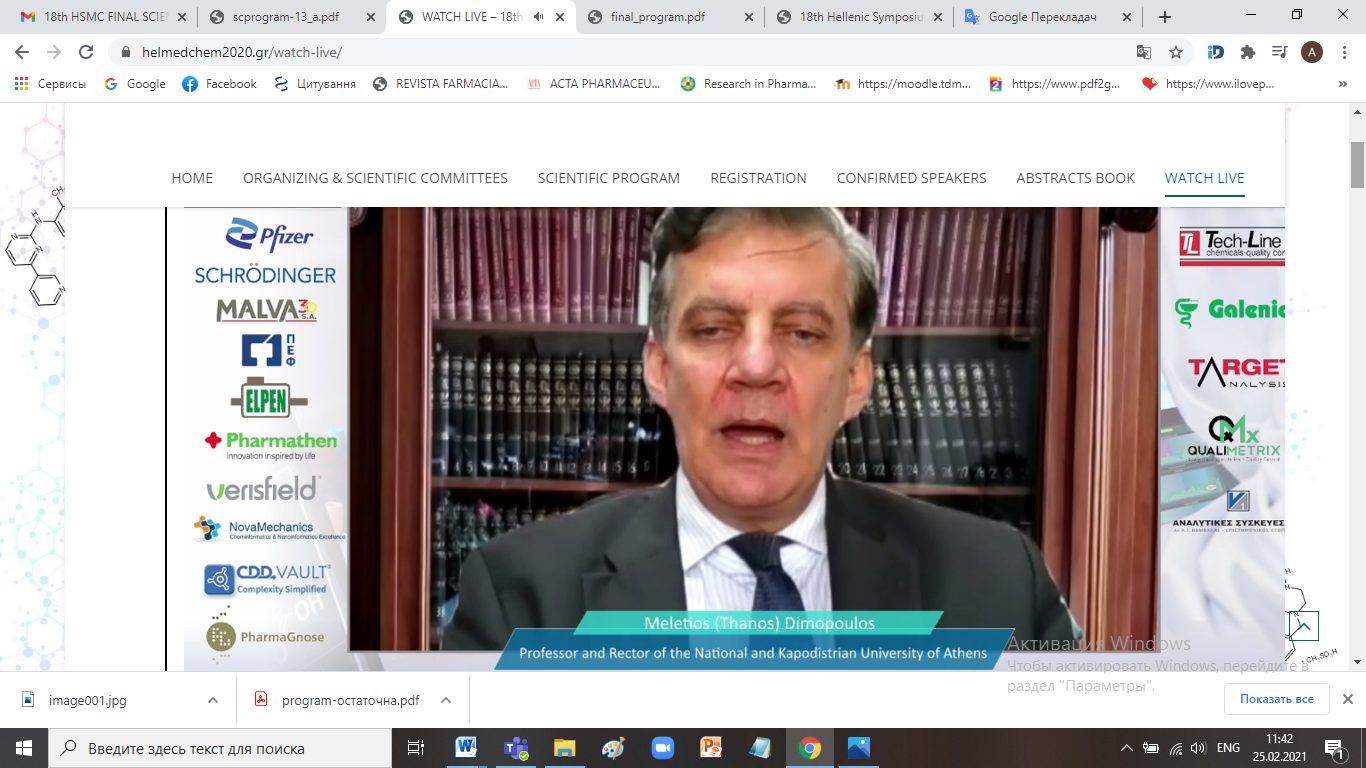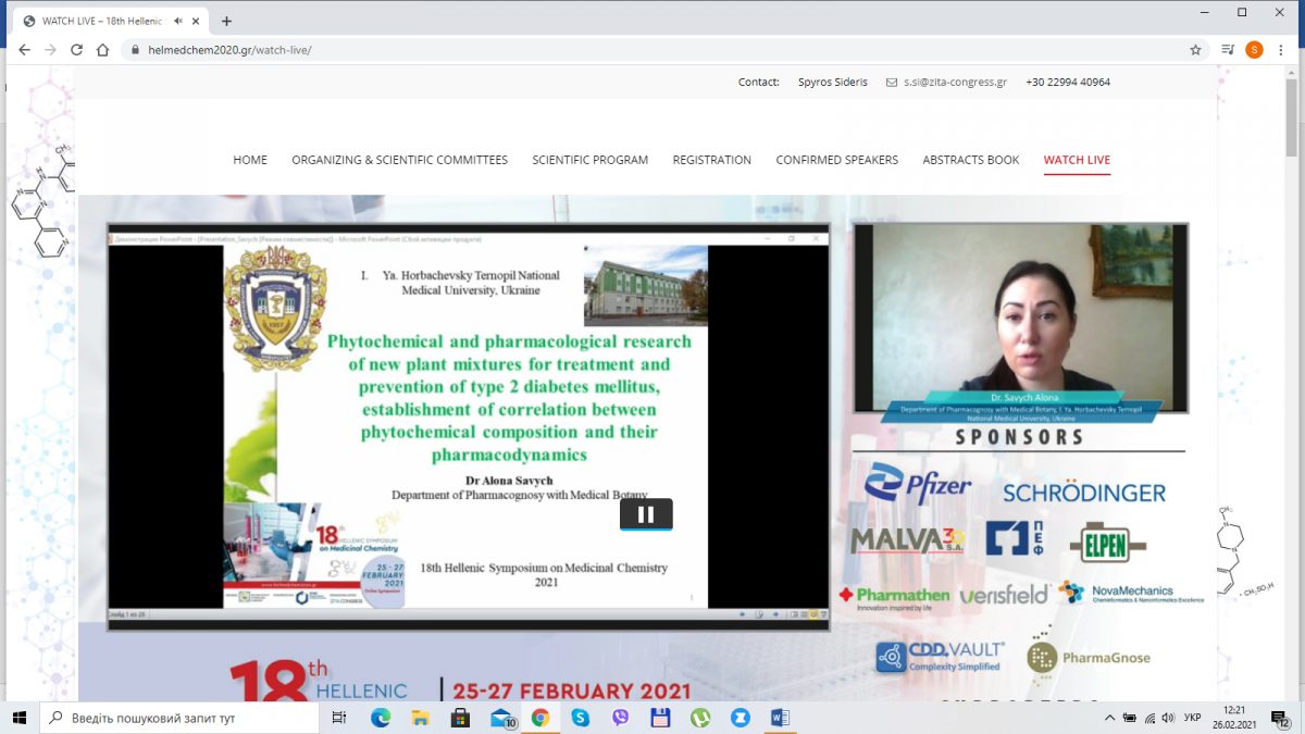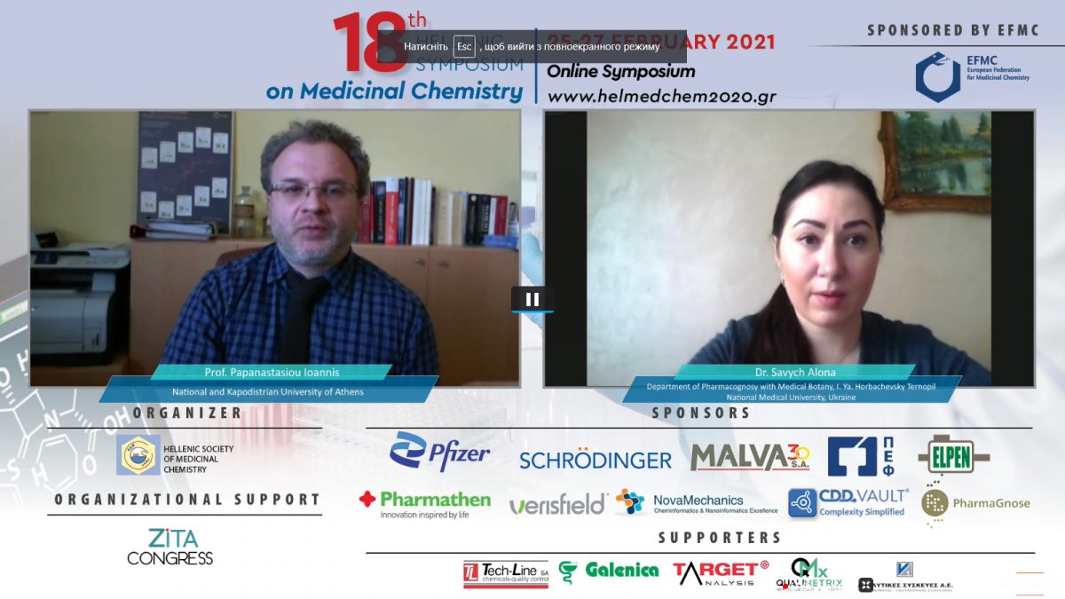 On February 25-27, 2021, the 18th Hellenic Symposium on Medicinal Chemistry was held. The event was organized by the Hellenic Society of Medicinal Chemistry supported by the European Federation for Medicinal Chemistry and Medical Biology. The symposium is held annually for 35 years in Greece and is an important event for the world scientific community.