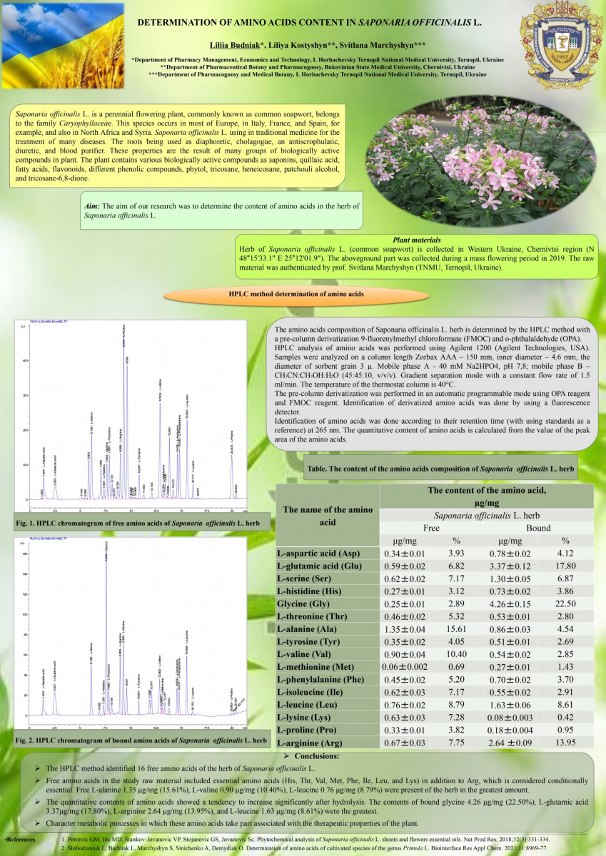 Poster presentation by Lilia Budniak, the Assistant Professor of the Department of Pharmacy Management, Economics and Technology, Lilia Kostyshyn, the post-graduate student of the Department of Pharmacognosy and Medical Botany, and Professor Svitlana Marchyshyn