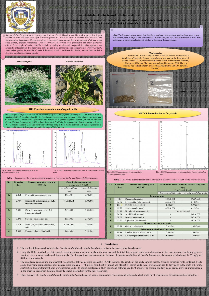 Poster presentation by Liudymyla Slobodianiuk, the Assistant Professor of the Department of Pharmacognosy and Medical Botany, Olha Skrynchuk, the post-graduate student of the Department of Pharmacognosy and Medical Botany and Professor Svitlana Marchyshyn