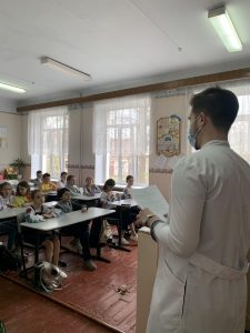 On April 30, 2nd year medical students Nadkevych Anastasia, Khmil Dmytro and Heriak Valentyna delivered a lecture on “Healthy food and diseases caused by poor nutrition” at Ternopil Secondary School – Law Lyceum No.2. Pupils and teachers asked questions to students and watched an educational video.