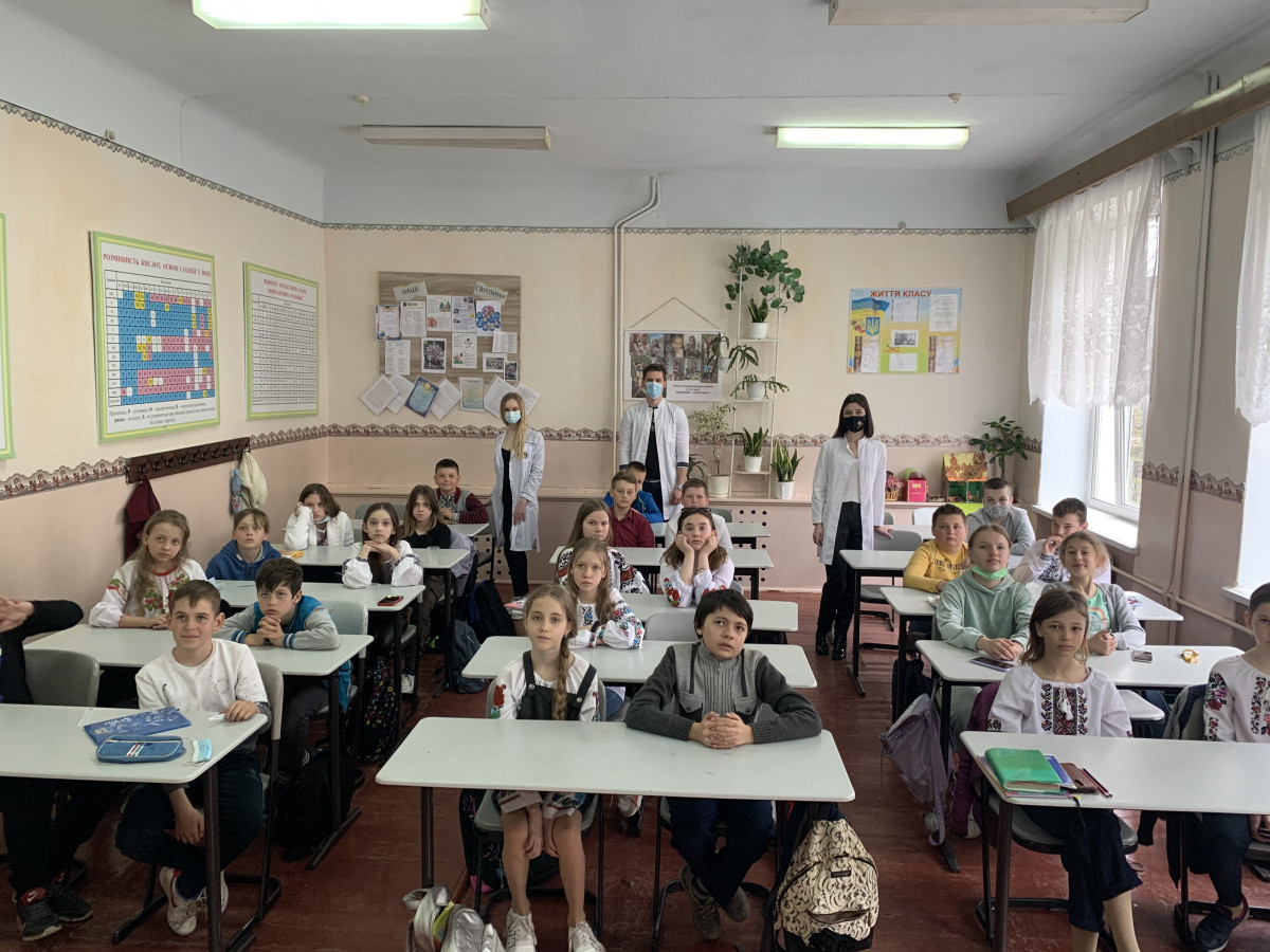 On April 30, 2nd year medical students Nadkevych Anastasia, Khmil Dmytro and Heriak Valentyna delivered a lecture on “Healthy food and diseases caused by poor nutrition” at Ternopil Secondary School – Law Lyceum No.2. Pupils and teachers asked questions to students and watched an educational video.