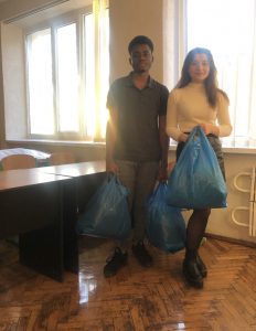 On the Family Day, the student volunteers presented clothes to those in need of such help and surprised with a musical performance. Lisovets Oksana, the artist of the vocal trio “Solovii Halychyny”, played the bandura and performed the song “Tyha voda (Silent Water)”. Martha Struk, the student of the group MM-212, sang the song “O mój rozmarynie”.