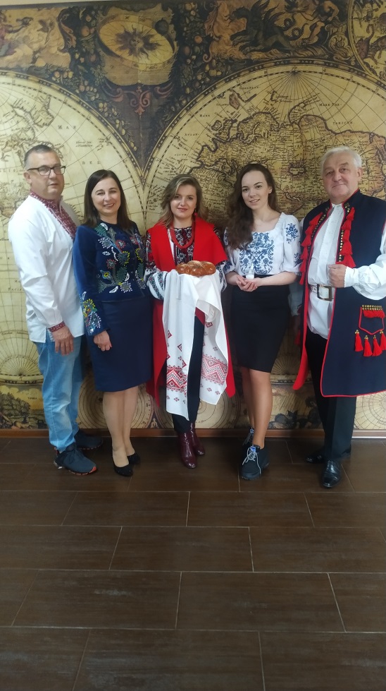 Marta Struk won a prize and had the opportunity to represent our university at an international contest. The day before, the student together with Vasyl Ivanovych Irmiychuk, the Deputy Director for Concert Work of the Ternopil Regional Philharmonic, the leader of the Zbruch ensemble and his colleagues met Polish guests and organizers of the competition Zofia Paczóska and Wojciech Bardowski in the best Ukrainian traditions: with bread and salt.