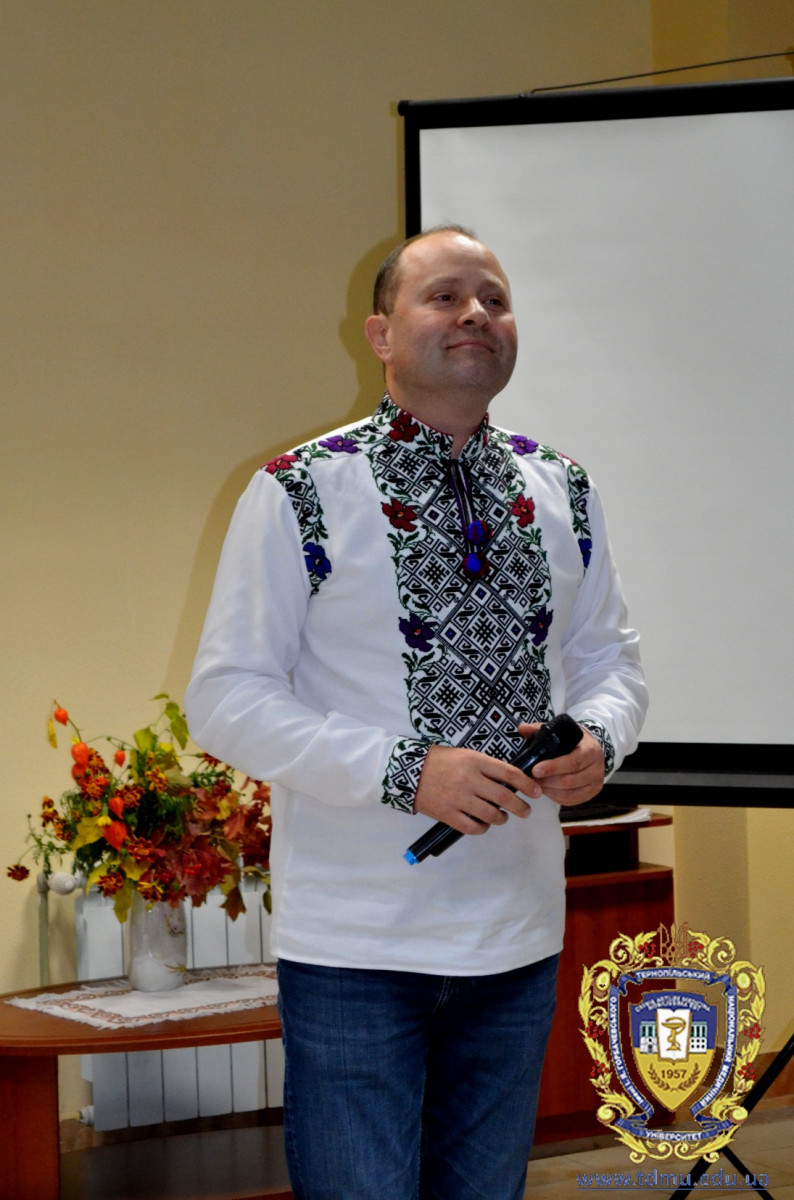 To discover your talent is happiness. Even if talent has not become a matter of a lifetime, it will sooner or later remind about itself, call and become the embodiment of the aspirations of the soul. On October 5, a literary and musical event “Surgeon’s Heart” was held at the TNMU Library. Associate Professor Yuri Futuima, the author and performer of his own songs, lecturer of the L.Ya. Kovalchuk Department of Surgery No.1, Urology, Minimally Invasive Surgery and Neurosurgery, I. Horbachevsky Ternopil National Medical University, joined it as well.