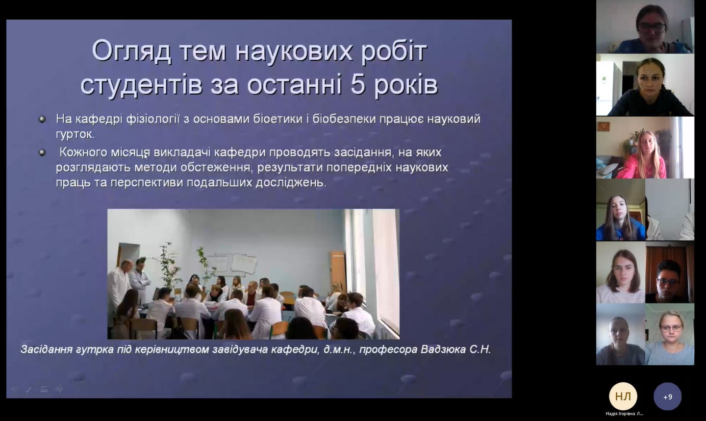 A meeting of the scientific circle of the Department of Physiology, Bioethics and Biosafety chaired by Professor Vadziuk Stepan Nestorovych, the Head of the Department took place on October 5, 2021.