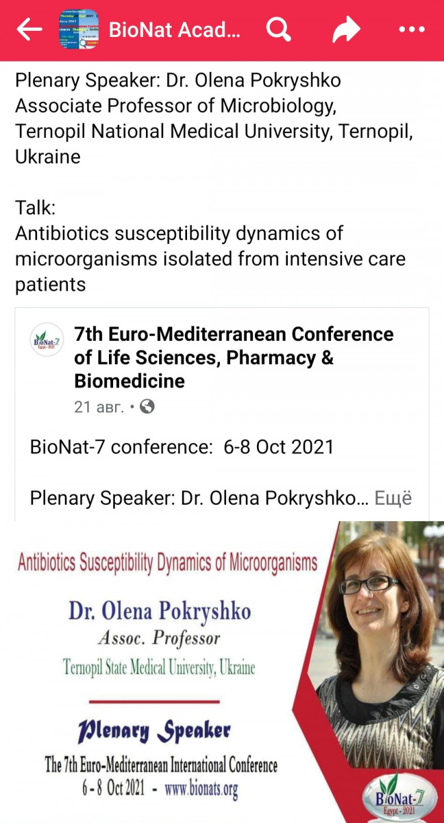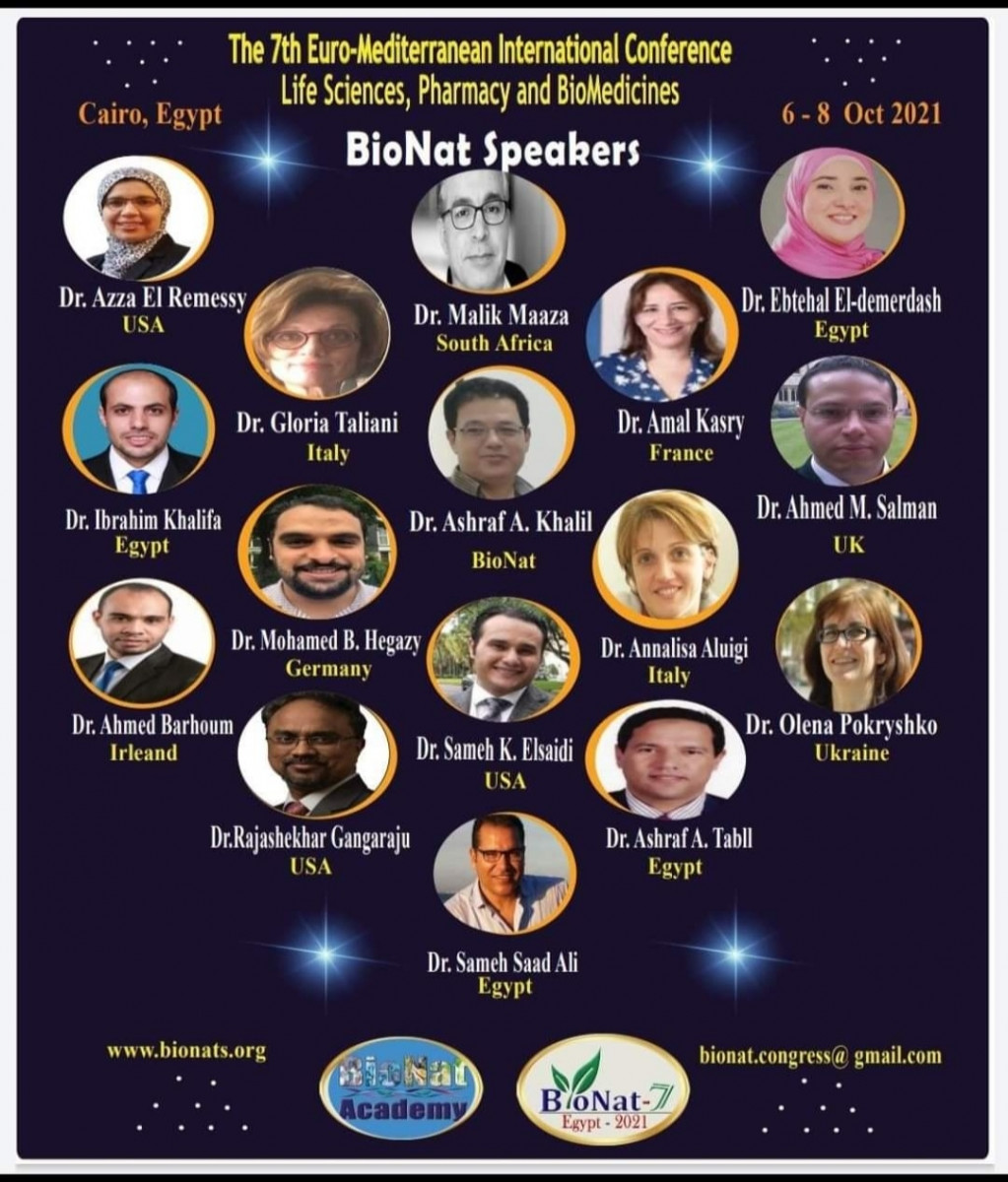 The 7th Euro-Mediterranean Conference LifeSciences, Pharma, and Biomedicine (BioNat-7) was held in Cairo (Egypt) on October 7-8, 2021. The aim of this scientific forum was to join all professors, academics, scientists, researchers and students to share experience, knowledge, innovations, new trends in life sciences, pharmacy and biomedicine. In the COVID-19 pandemic, the event was held in a mixed format: the first day (October 7, 2021) – a meeting in Cairo, and the 2nd day (October 8, 2021) – an online webinar.
