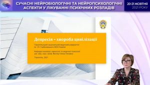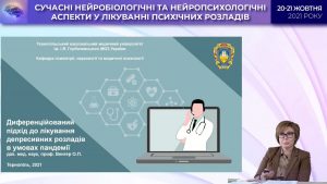 Professor Olena Petrivna Venger, the Head of the Department of Psychiatry, Narcology and Medical Psychology of Ternopil National Medical University, presented her report on “Differentiated approach to the treatment of depressive disorders in a pandemic”.