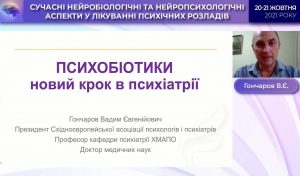 Vynnyk Mykhailo Ivanovych, Professor of the Department of Psychiatry, Narcology and Medical Psychology of Ivano-Frankivsk National Medical University reported on “Some neurobiological aspects of psychopharmacotherapy of schizophrenia”.