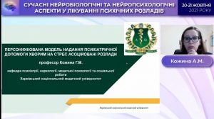 Professor Kozhyna Anna Mykhailivna, Head of the Department of Psychiatry, Narcology, Medical Psychology and Social Work of Kharkiv National Medical University presented the report “Personalized model of providing psychiatric care to patients with stress-related disorders”.