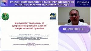 Korostiy Volodymyr Ivanovych, Professor of the Department ofPsychiatry, Addiction, Medical Psychology and Social Work of Kharkiv National Medical University presented the report on “Neuropsychological aspects of anxiety and depression in somatic patients”.