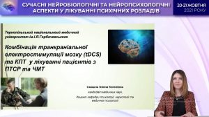 Olena Yevhenivna Smashna, Associate Professor of the Department of Psychiatry, Narcology and Medical Psychology of TNMU, presented a report on “Combination of transcranial brain stimulation (tDCS) and CBT in the treatment of PTSD patients with craniocerebral trauma”.