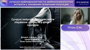 The report on “Current neurobiological aspects of treatment of depression in children and adolescents” was presented by Olena Mykolaiivna Pityk, Associate Professor of the Department of Psychiatry, Addiction and Medical Psychology, Ivano-Frankivsk National Medical University.