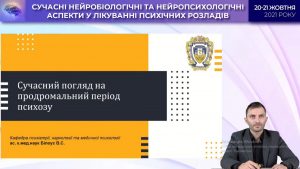 Volodymyr Sergiiovych Bilous, Assistant Professor of the Department of Psychiatry, Narcology and Medical Psychology of TNMU, presented a report on “Prodromal period of psychosis”.