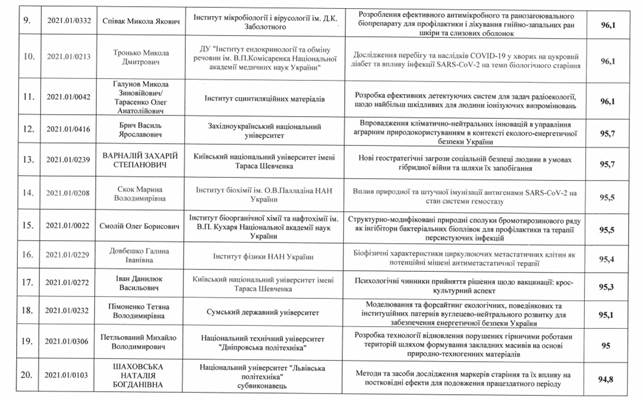 The Scientific Council of the NRFU has published the ranking of projects submitted for the competition “Science for Security and Sustainable Development of Ukraine” in 2021. A total of 432 applications for the competition were processed, only 268 of them were admitted to scientific and scientific-technical examination.
