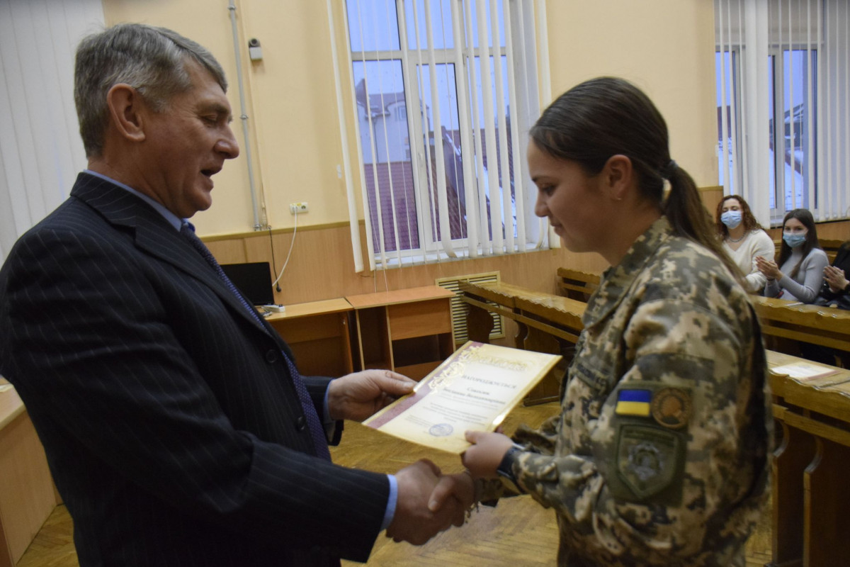 Leonid Kravchuk, the Head of the Regional Organization of the Union of Slavic Writers, the Head of the NGO “Institute of National Heritage”, presented a certificate of the Union of Slavic Writers to Didukh Valerii, Associate Professor of the Department of Medical Physics of Diagnostic and Medical Equipment, and on behalf of the NGO “Institute of National Heritage Research” presented diplomas and gifts to the cadets of the college and Nadkevich Anastasia and Rybenchuk Marty, the students of TNMU.