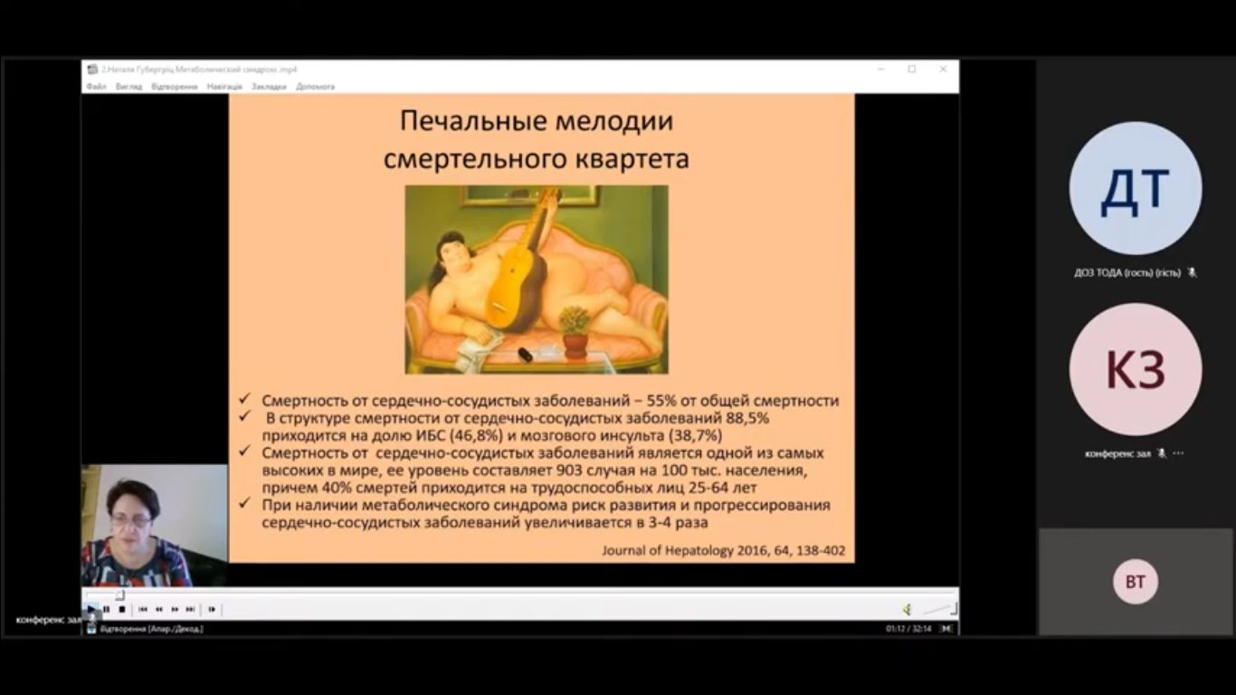 Professor Natalia Huberhritz, MD, President of the Ukrainian Club of Pancreatologists, presented the report on “Deadly quartet (pathology of the digestive system in metabolic syndrome)”.