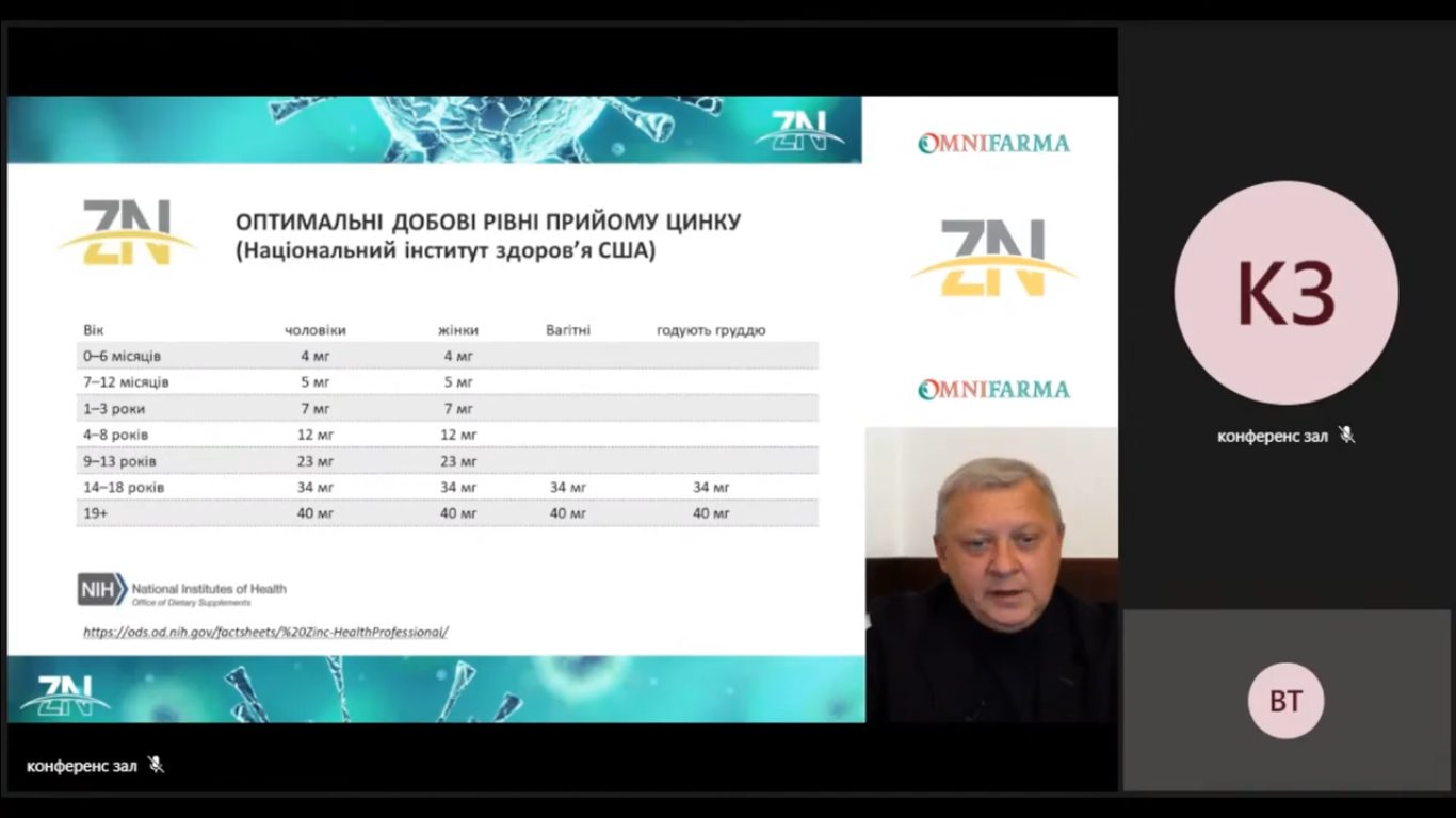 During the conference, Vadym Teryoshyn, Professor of the Department of Infectious Diseases, Kharkiv National Medical University, presented a report on “Significance of zinc in prevention of respiratory viral infections: evidence-based medicine and the point of view of international experts”.